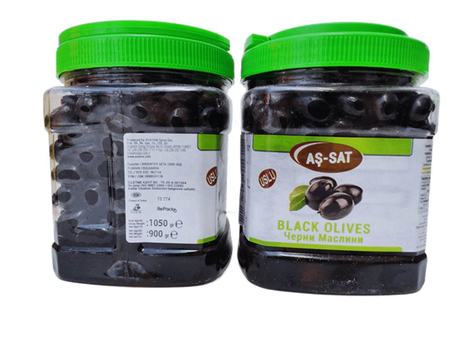 Маслини черни с костилка "УСЛУ" в зехтин в PVC буркан--900 гр.